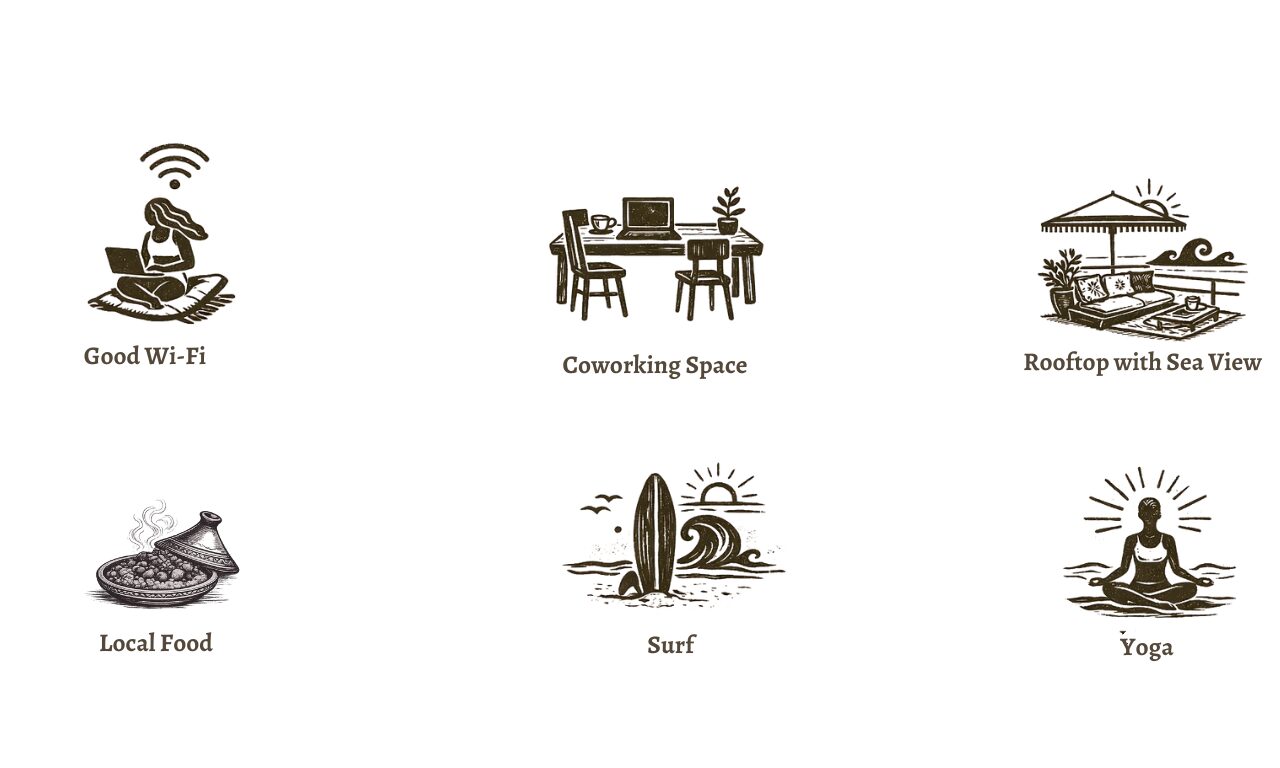 Taghazout Life blends the vibrant surf culture with Morocco’s rich local heritage. We offer an authentic experience where guests can enjoy world-class waves, connect with the community, and immerse themselves in the relaxed coastal vibe. It’s a unique mix of adventure, culture, and surf lifestyle.