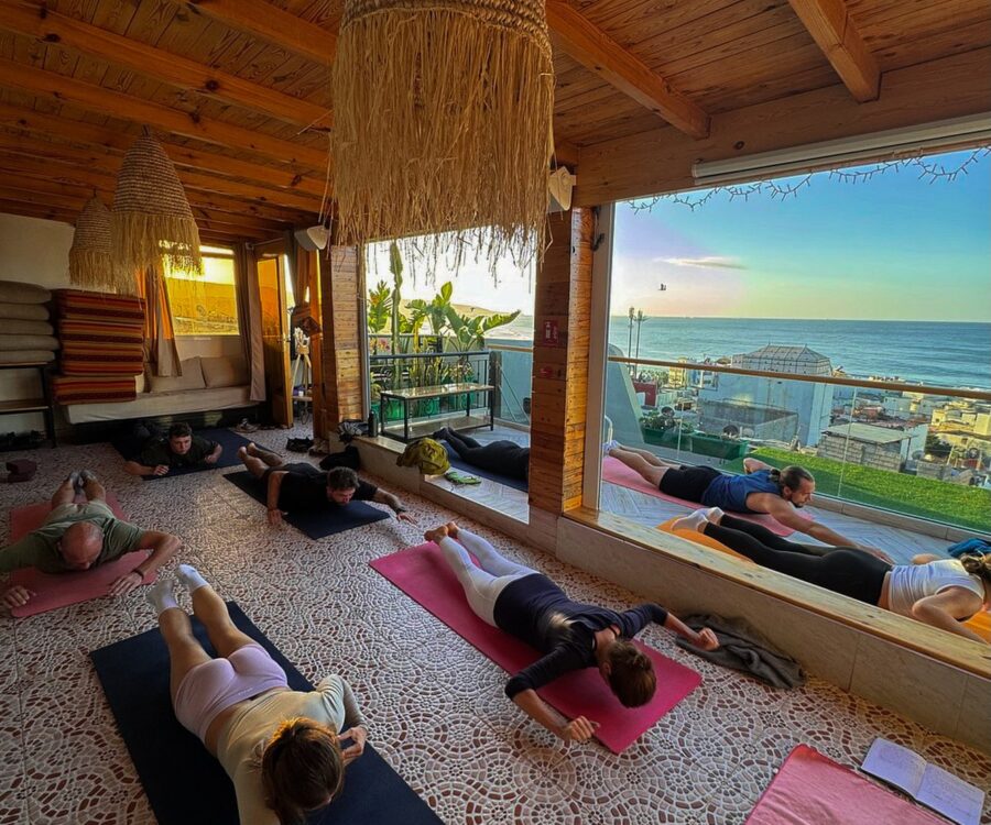 Notre forfait Surf & Yoga combine yoga quotidien, cours de surf de qualité et pension complète pour une expérience de bien-être totale à Taghazout. C'est l'option idéale si vous souhaitez allier surf, yoga sur un toit-terrasse et détente au bord de l'océan.